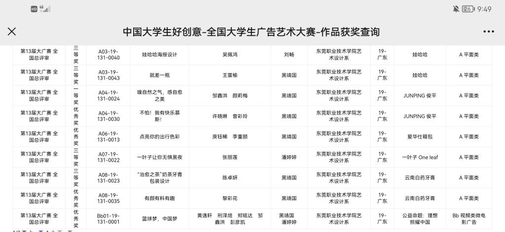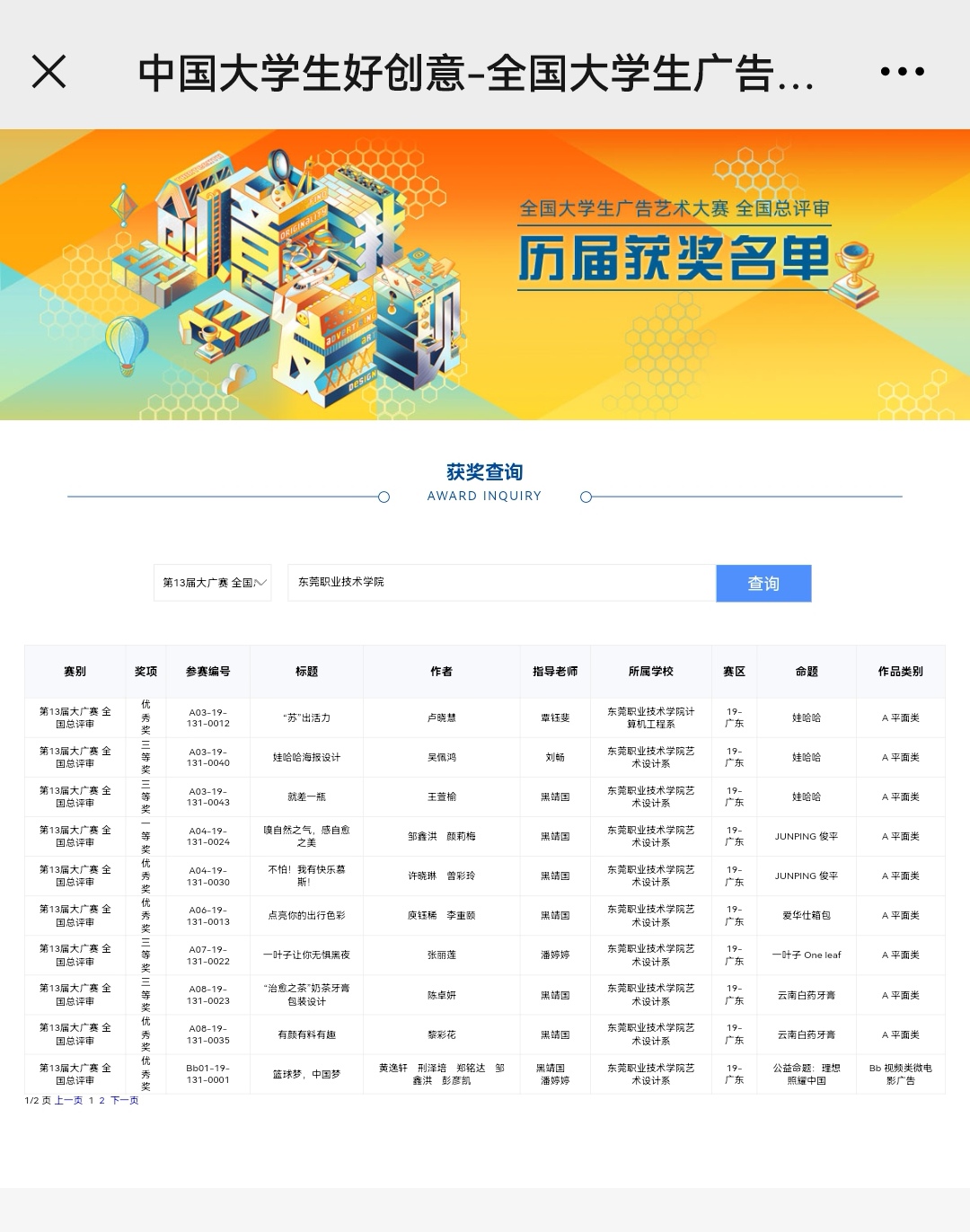 “大广赛”是广告设计创意领域全国规模最大的国家级赛事,是本专科学生同台展现精彩创意的竞赛平台,也是广告专业实践教学改革的试金石。今年“大广赛”共计收到全国1679所高校48万余件参赛作品,共评出一等奖159件。我院广告艺术设计专业多年来积极参赛,将大赛主题与教学紧密结合,以赛促教,以赛促学,培养学生的创新意识和解决问题的能力,推动专业人才培养模式和实践教学改革,促进人才培养质量不断提高。