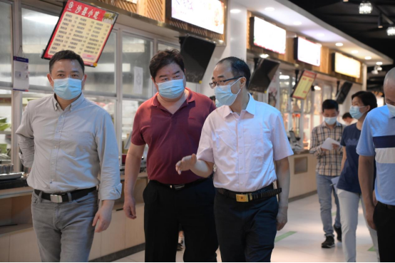 贺校长一行先后到学生宿舍、教室、学生食堂、员工临时宿舍、校园进出口等场所检查疫情防控措施落实情况,并对坚守在疫情防控一线的工作人员进行慰问,提出工作要求。在学生宿舍和教室,详细询问同学们日常生活和线上上课情况,叮嘱同学们有需求及时和老师沟通,提醒同学们做好个人防护,同时加强身体锻炼。在食堂,仔细了解食堂卫生安全管理和学生就餐情况,强调要加强环境卫生和食品安全管理,严格落实各项防疫措施,确保学生就餐环境以及餐品安全。