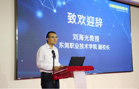 刘海光副校长在会上致欢迎辞。他介绍了我校的办学情况,提出产业要发展,人才是首位,希望与会专家通过本次研讨会将行业最新技术、最新工艺带入校园,融入到专业群人才培养方案中,行校企共同培养适应中国印刷产业发展的专业人才。