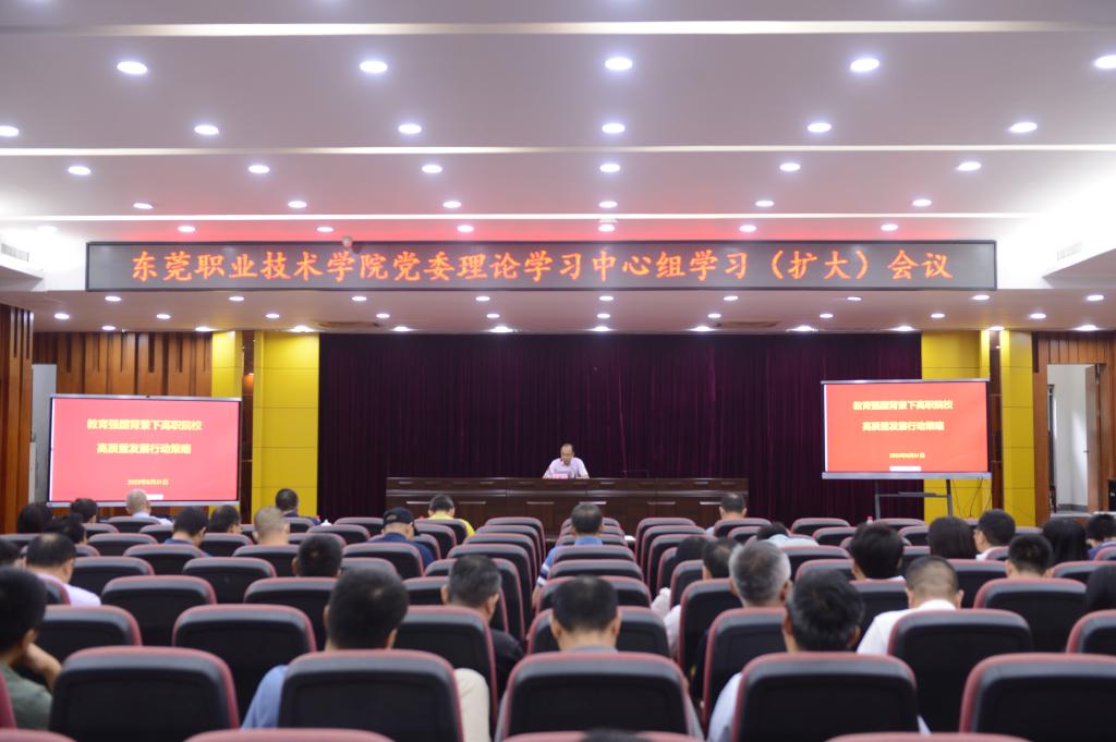会议围绕职业教育高质量发展这个课题进行了集中学习,并邀请中国教育科学研究院职业与继续教育研究所的宗诚博士进行线上授课。她以“教育强国背景下高职院校高质量发展行动策略”为主题,详细阐述了当前职业教育发展的背景,解读了职业教育最新的政策文件、项目任务以及常见问题,并结合当前形势任务对职业院校如何以“双高”建设为抓手实现突破、再创佳绩提出了宝贵的意见建议。