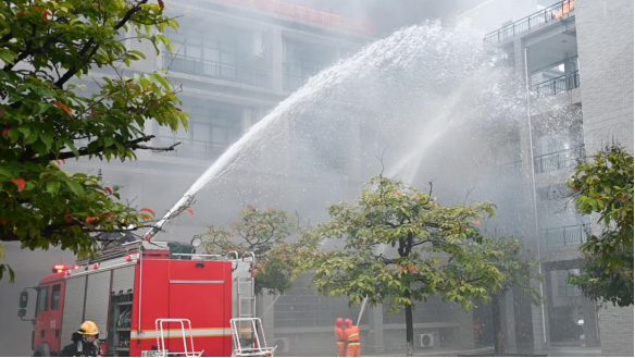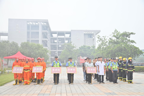 消防应急疏散灭火演练以教学楼电器设备自燃引发火灾为背景,按照火场报警、紧急疏散、初期火灾扑救、与消防救援大队协同作战、总结讲评五个环节进行。演练活动贴近实战,生动逼真,安全有序,检验了预案,达到了演练目的。