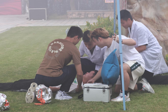 医护人员抢救受伤学生