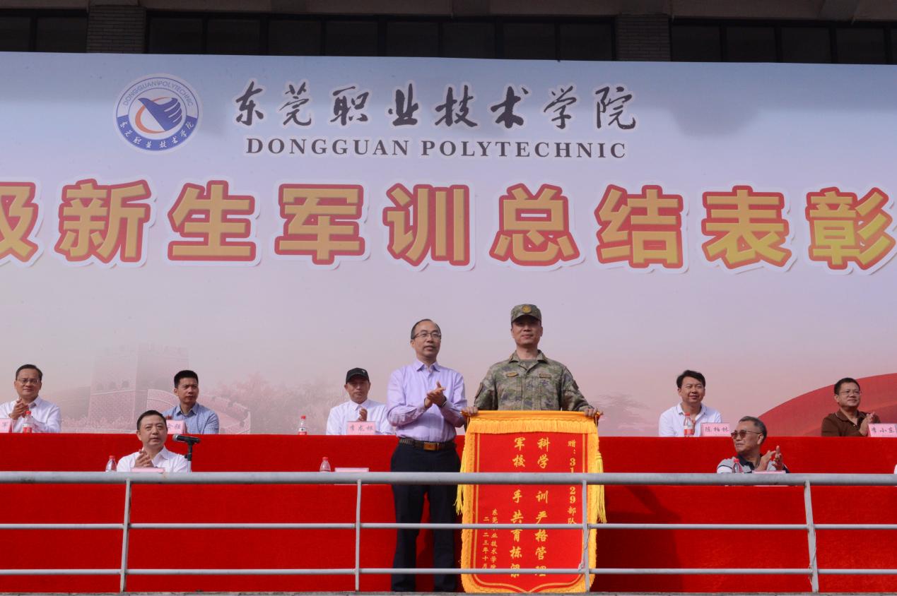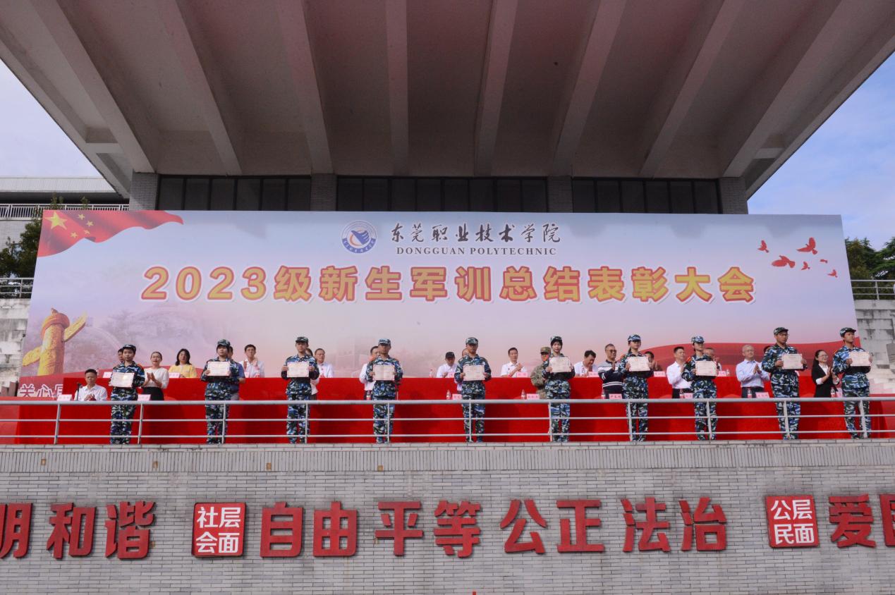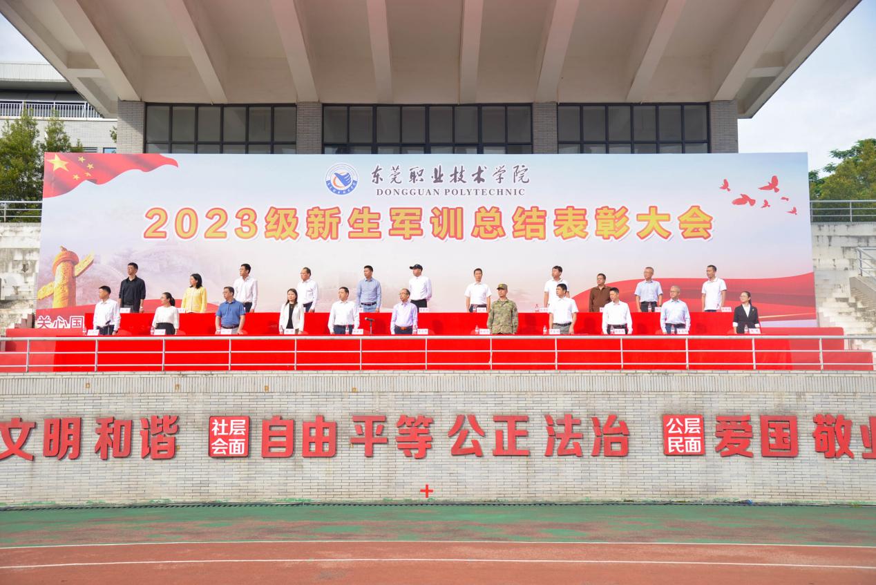10月23日上午,2023级新生军训汇报表演暨总结表彰大会在体育场举行,我校党委副书记、校长贺定修,党委委员、副校长杨云奇,31629部队副旅长、军训团团长赵剑烈上校出席大会,东莞理工学校党委副书记、副校长尹东明,东莞市商业学校党委委员、副校长张黎,东莞市经济贸易学校党委委员、副校长杨良松以及我校中层干部、军训辅导员、班主任以及31629部队的教官参加大会。大会由保卫处处长刘高明主持。