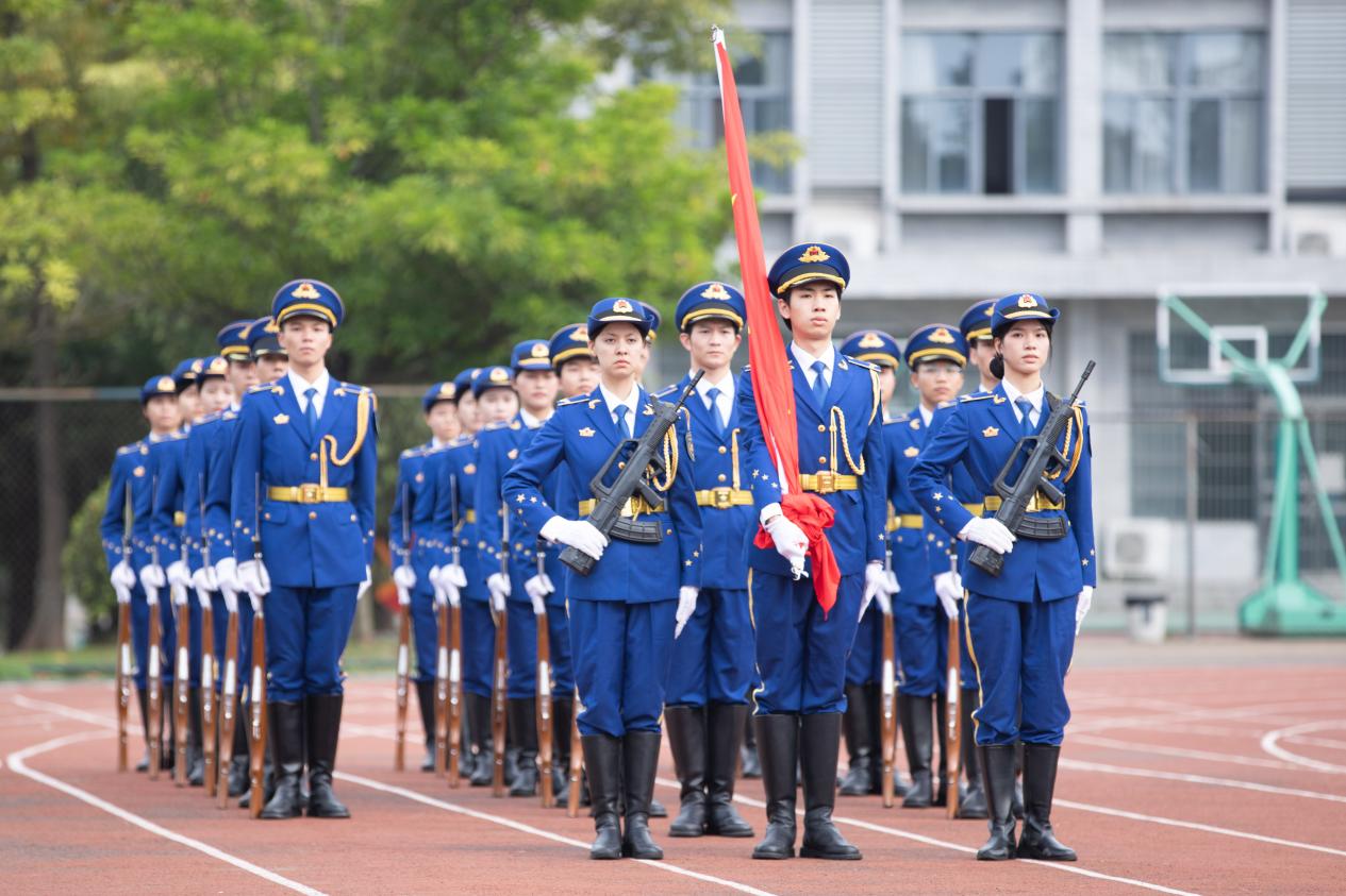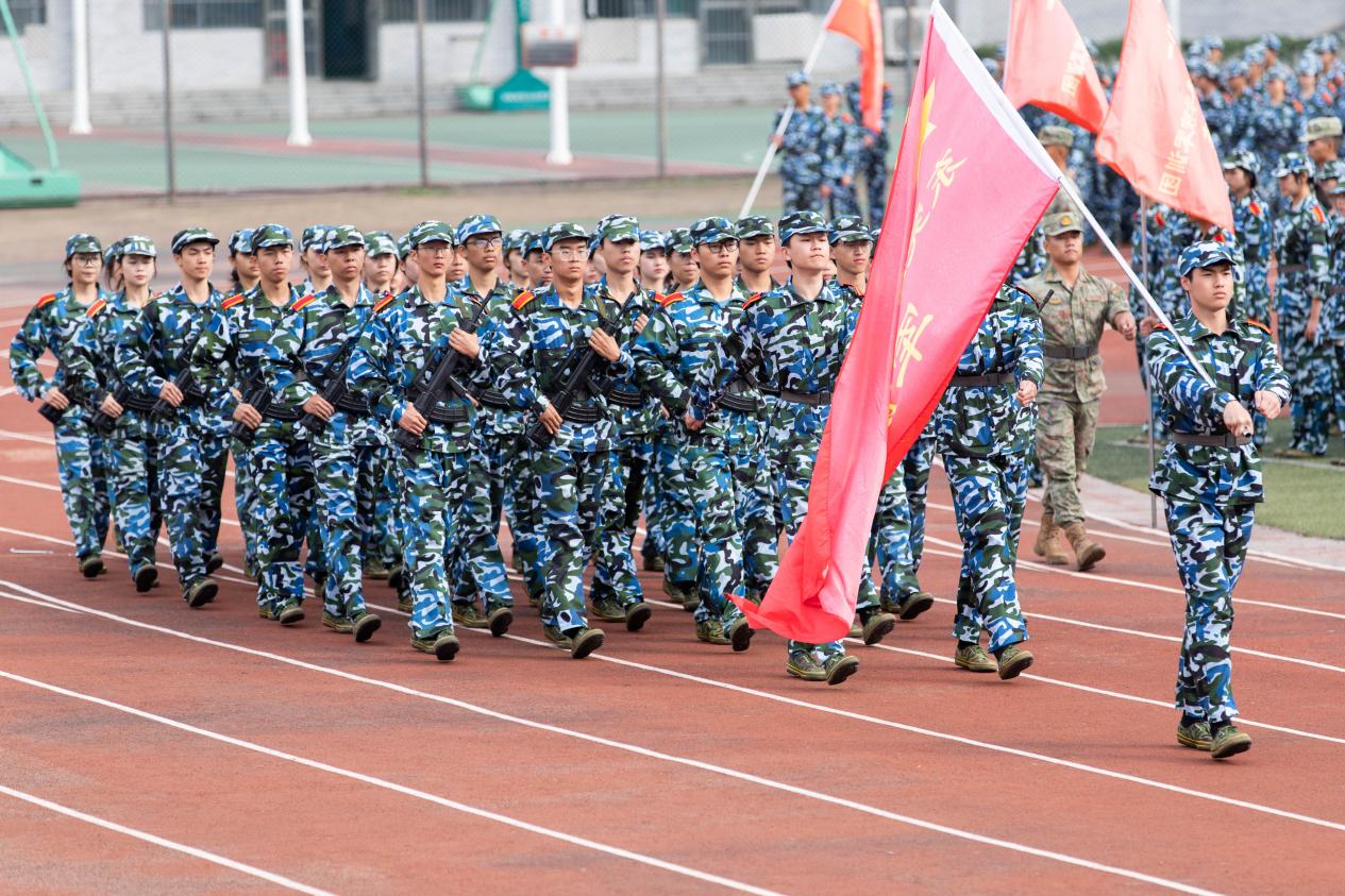 随着嘹亮的国歌声响起,军训总结表彰大会正式开始。同学们精神抖擞、士气高昂,分列式方阵迈着整齐划一的步伐走过主席台,展现出了当代大学生昂扬的精神风貌和青春活力,展示了2023级同学们的生机与活力,令人振奋,赢得现场热烈掌声。