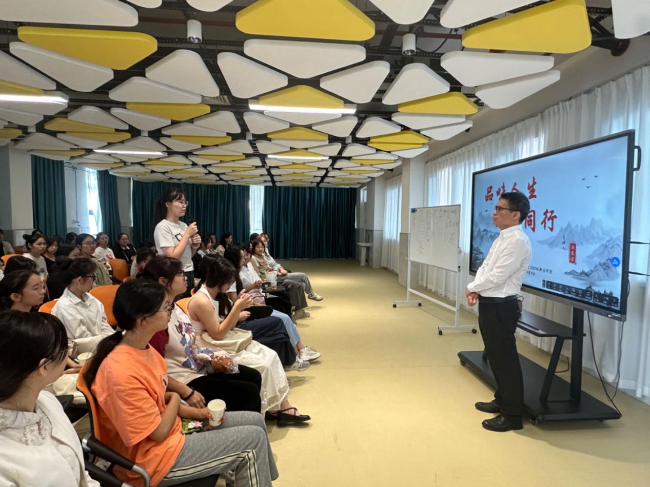 11月8日上午,我校党委副书记、纪委书记蔡东宝在人文艺术大楼505室为学前教育与人文学院2023级全体学生作题为“品味人生,与爱同行”的人文讲座。相关专业教师、辅导员代表参加了本次讲座。