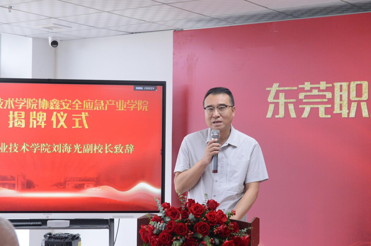 我校副校长刘海光表示,应急产业学院的成立是推动东莞市应急能力和应急治理体系现代化的重要举措,是社会发展和应急事业的大势所趋。应急产业学院作为我校发展战略的重要组成部分,促进了产学研一体化发展,为学生提供更加贴近实际、具有市场竞争力的教育培养。一方面,开展产学研合作项目,推动科技成果转化和产业升级;另一方面通过实训基地和实践项目,让学生在真实的工作环境中锻炼自己,提升自己的综合素质。他希望东莞职业技术学院协鑫安全应急产业学院能成为学校特色发展的新亮点,为培养更多的优秀人才、服务社会发展作出更大的贡献。