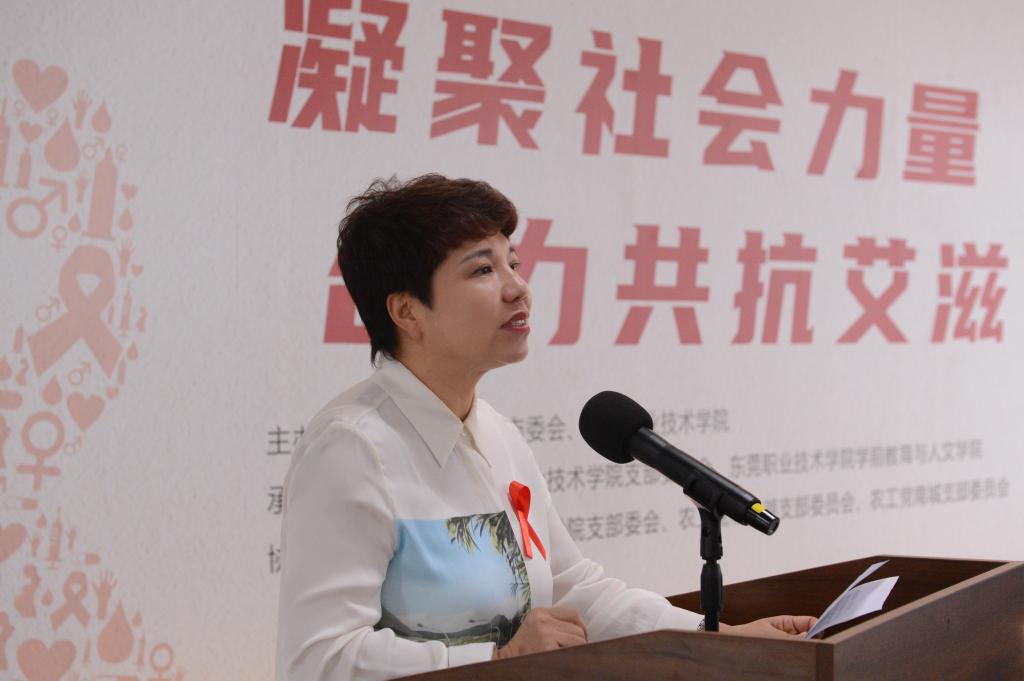 我校党委书记司琪在活动中致词,她感谢农工民主党东莞市委会为我校师生提供普及预防艾滋病知识的机会,希望农工民主党学校支部委员会进一步加强组织建设、发挥组织功能,为学校和东莞经济社会的发展积极建言献策,作出更大贡献。
