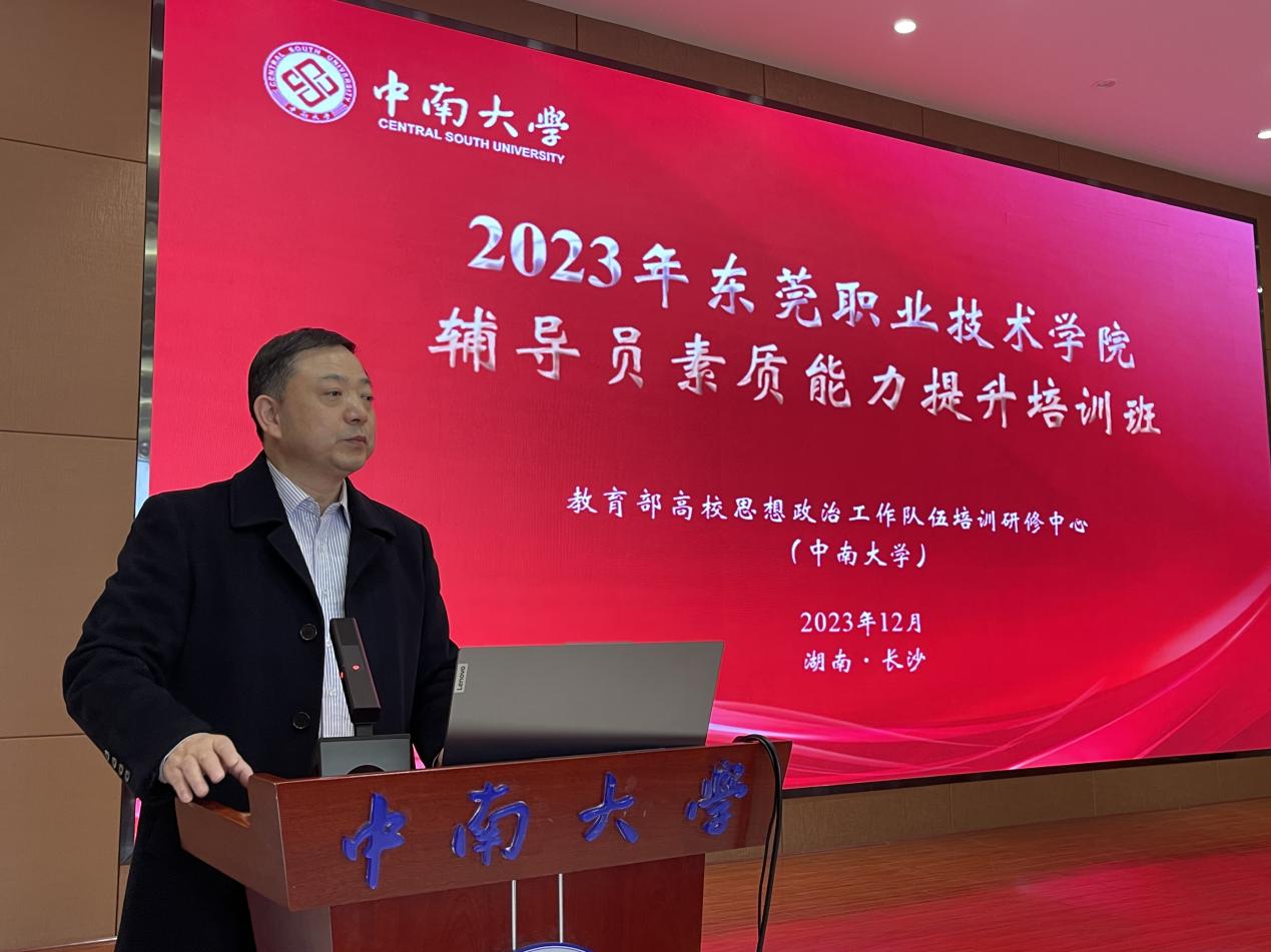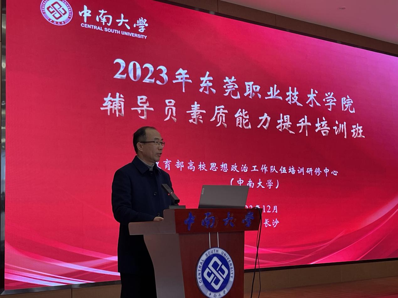 12月27日下午,2023年东莞职业技术学院辅导员素质能力提升培训开班仪式在中南大学毓秀楼238报告厅举行,副校长杨云奇主持了开班仪式,中南大学党委常委、党委副书记李景升致辞。
