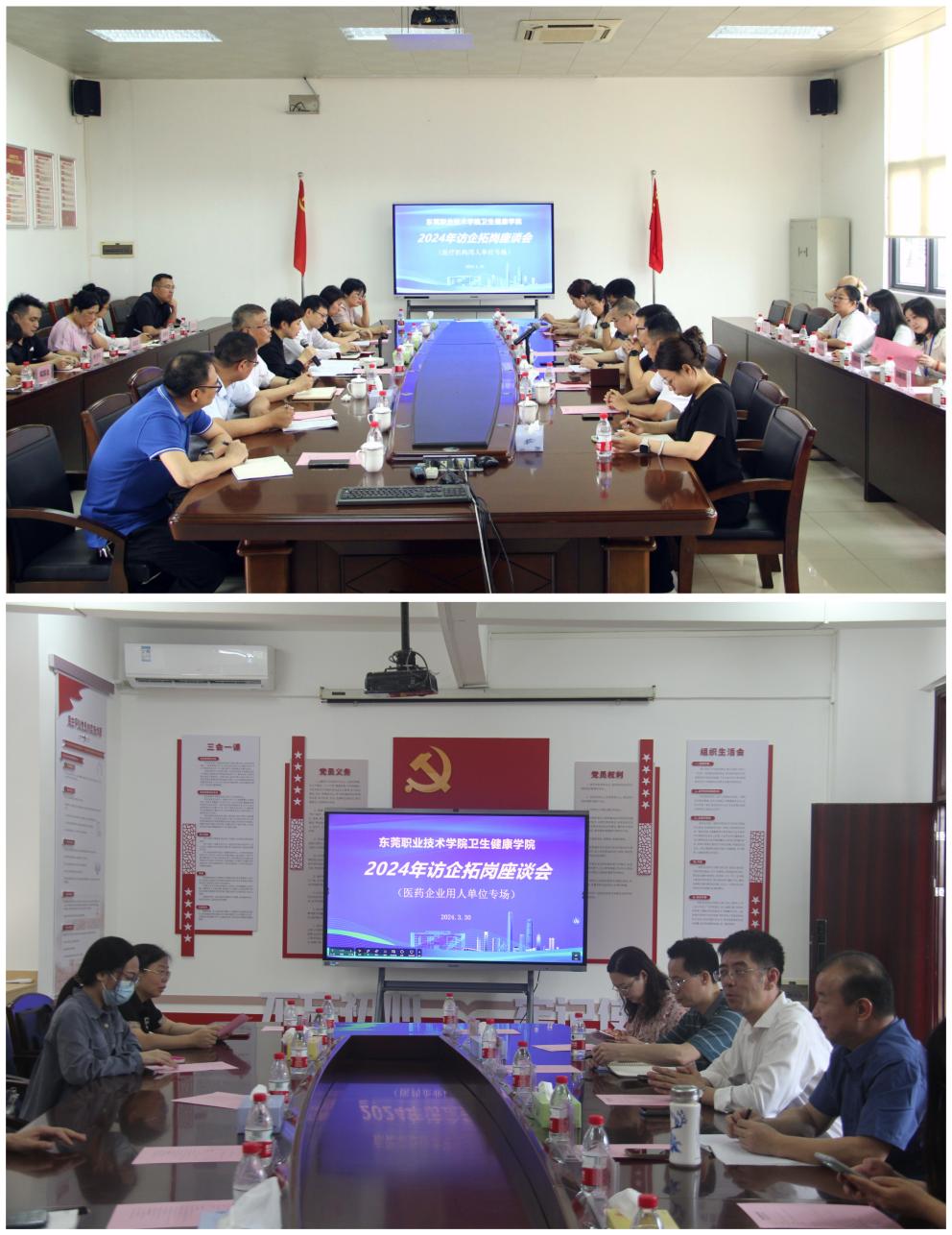 期间,学校分别组织了医疗单位及医药企业两场访企拓岗座谈会。会上,司琪书记对东莞市卫生健康局、各医疗单位的到来表示热烈的欢迎,并介绍了我校概况及近年来我校医药卫生类毕业生的就业情况。毛东波副局长介绍了目前我市医疗行业人才队伍概况。随后,参会人员就人才培养方式和校企协同育人等进行了认真讨论。