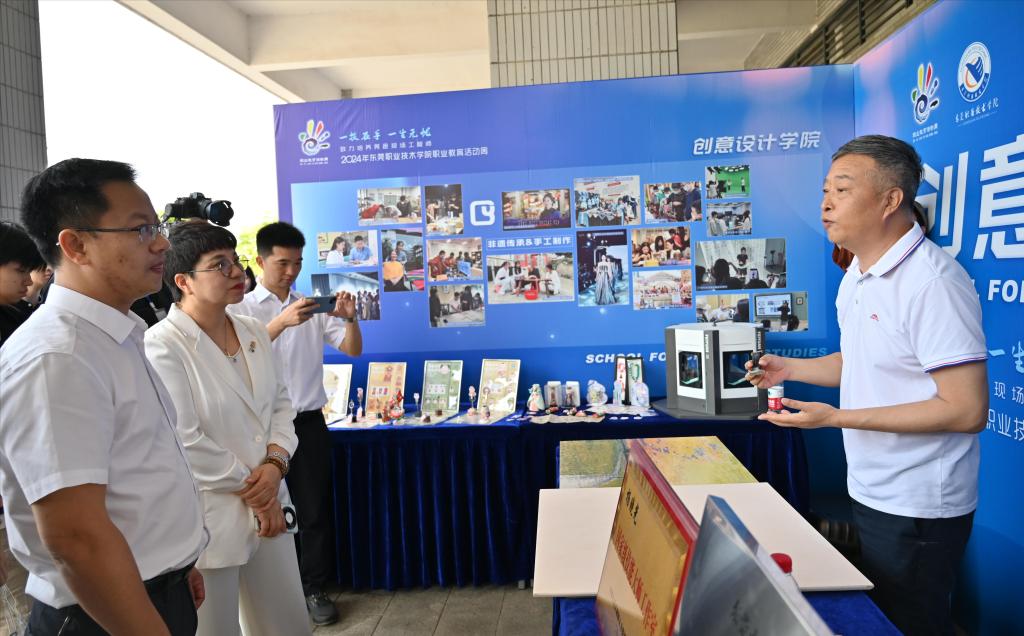 随后,我校党委书记司琪,党委副书记、校长贺定修,教育局副局长徐泽文、广东酒店管理职业技术学院校长徐刚、东莞理工学校书记巫云、虎彩集团院长易益、北京精雕集团经理陈永涛等领导共同登台启动东莞职业技术学院2024年职业教育活动周。