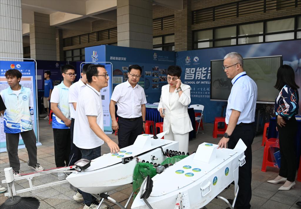 启动仪式结束后,在我校党委书记司琪陪同下,东莞市教育局副局长徐泽文等领导参观了我校院系、企业、实训基地的展示。