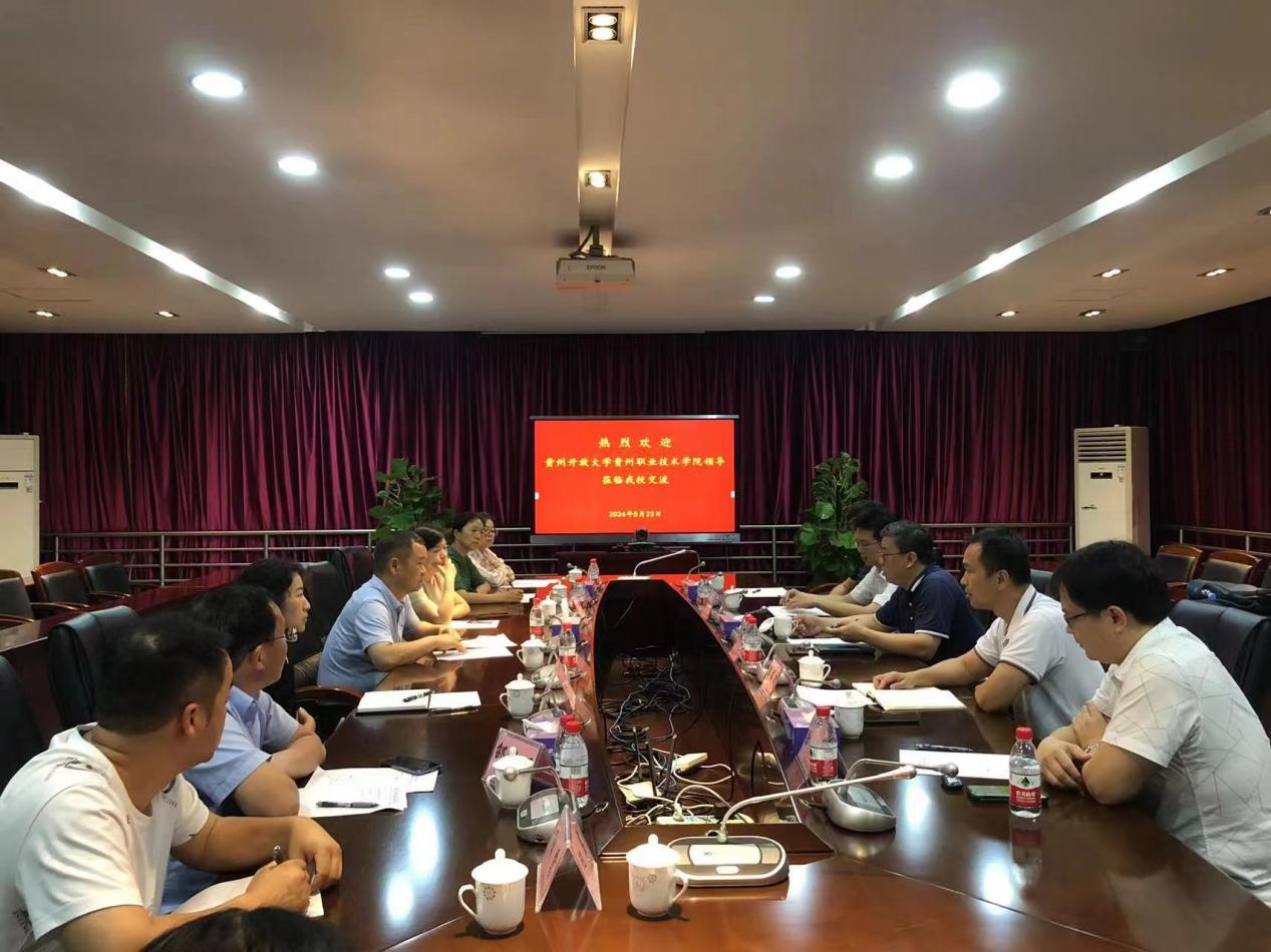 5月23日下午,贵州开放大学(贵州职业技术学院)党委委员、副校长林长松一行来我校交流。我校党委委员、宣传部部长杨洋,建筑学院党总支专职副书记吴戚武,建筑学院副院长杨润丰及相关专业负责人参加了此次交流。