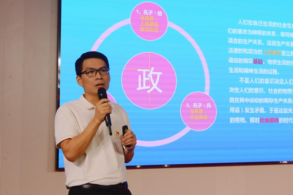 蔡东宝副书记以《增强政治定力 严格执行和维护党的纪律》为题,以古字解析作为切入点,引用习近平总书记的重要讲话内容、马克思主义政治经济学的重要观点,借助诗经、论语的经典篇章进行生动而深入的讲解,从“无信不立”“富之教之”“鸣鼓攻之”三个方面阐述党员干部如何增强政治定力,不断提升政治素养,筑牢纪律底线。