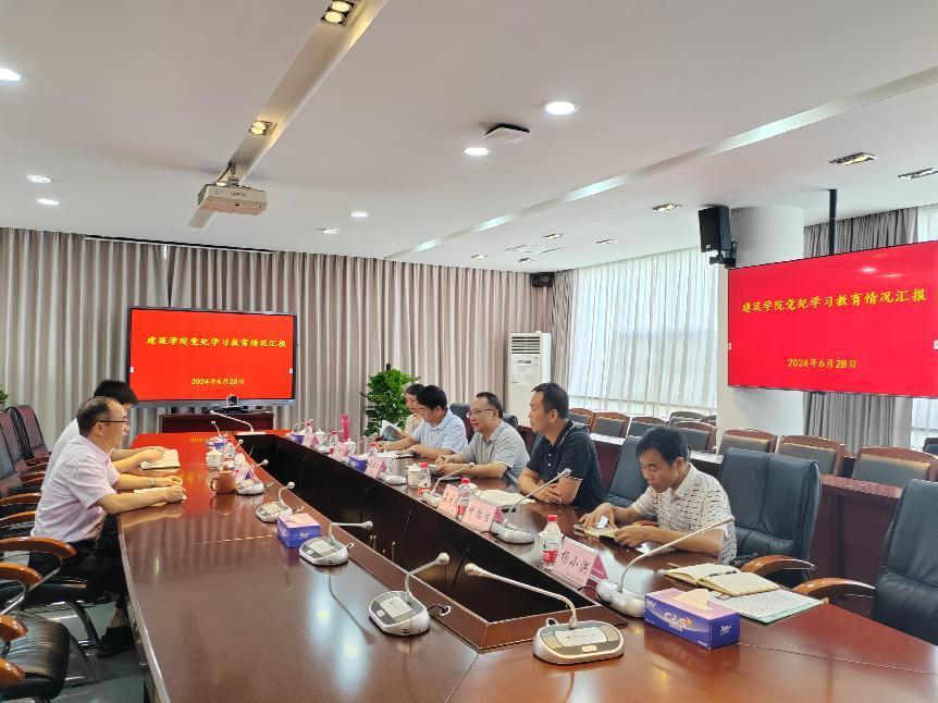 6月28日上午,学校党委副书记、校长贺定修对建筑学院党纪学习教育情况进行检查指导。建筑学院党总支书记、院长颜新宁及相关人员参加会议。