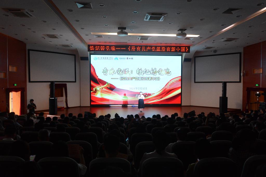 为庆祝建党103周年,深入推进党史和党纪学习教育,7月1日下午,我校举办了“清欢雅集”第四期党建文化活动——全体师生党员同上一堂音乐党课《铁纪铸党魂——没有中国共产党就没有新中国》。校党委书记司琪,校党委副书记、校长贺定修,校党委副书记、纪委书记蔡东宝,校党委委员、副校长杨云奇,校党委委员、宣传部部长杨洋,校党委委员、教务处处长王志明以及500余名师生党员参加了活动。