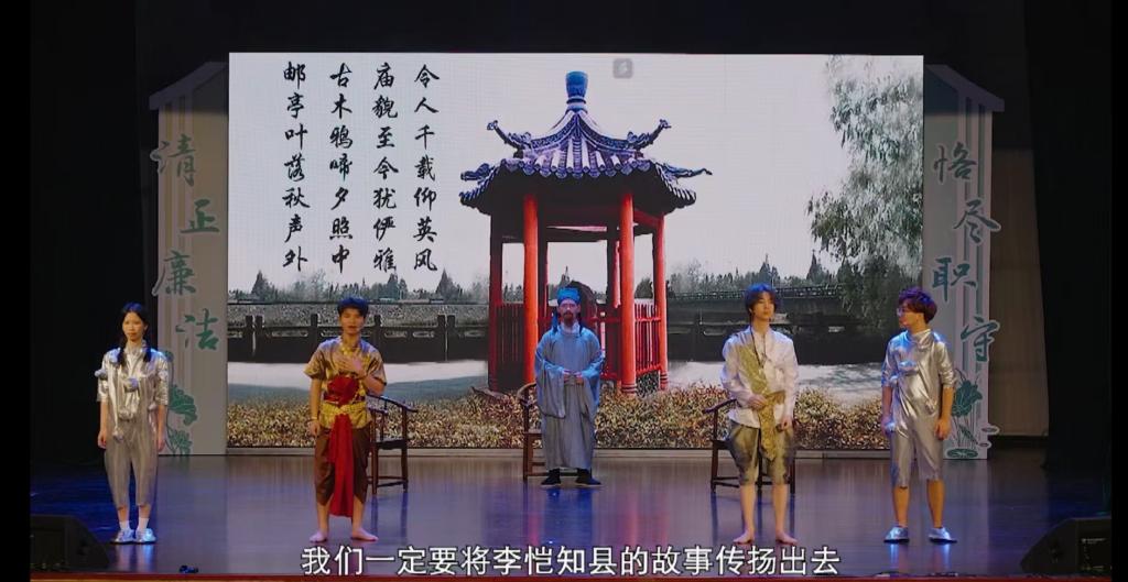《却金千载仰英风》立足东莞全国重点文物保护“却金亭碑”历史,通过创意改编、现代小品演绎的方式,再现了明代时期中泰通商交往中,东莞官员“却金守廉”的精神内核。小品以我校泰国留学生来华学习为引子,穿插泰国学生穿越明朝,亲历东莞官员拒绝暹罗商人酬金的桥段,展现了中国廉政文化源远流长的历史传统。