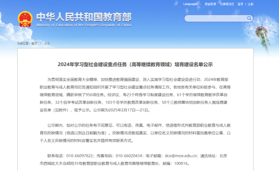 我校两个项目入选教育部2024年学习型社会建设重点任务(高等继续教育领域)培育建设名单