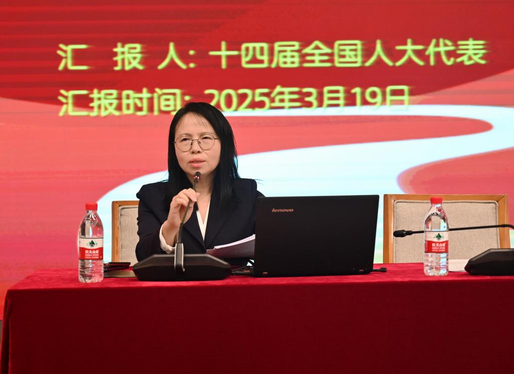 会上,全国人大代表、商贸学院院长周虹教授结合参会期间的亲身经历,分享了第十四届全国人民代表大会第三次会议概况、主要议程等,重点强调了习近平总书记在参加江苏代表团审议和看望民盟民进教育界委员时的重要讲话精神以及广东代表团履职情况,展现了两会对国家发展规划与民主实践的重要作用。