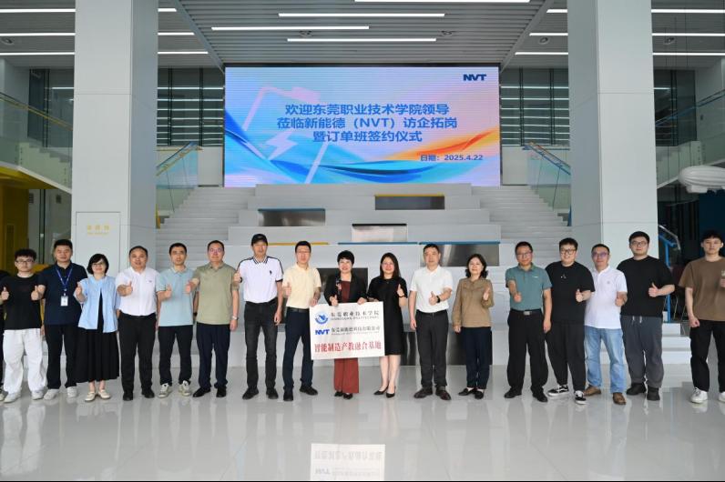 为全面贯彻党中央、国务院关于高校毕业生就业工作部署,深化学校产教融合,推动高质量就业,扎实推进学校高质量发展,4月22日上午,我校党委书记司琪带队赴东莞新能德科技有限公司(以下简称新能德)开展访企拓岗专项行动,签订联合培养订单班协议,举行智能制造产教融合基地揭牌仪式,党委委员、副校长杨云奇以及教务处、产教融合办、智能制造学院等负责人参加了活动。