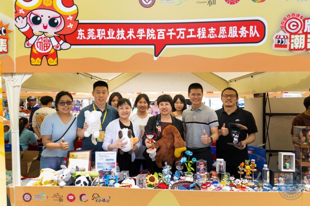 在“潮起茶山”潮玩暨非遗手作集市上,我校“百千万工程”创意设计学院志愿服务队为茶山镇量身打造的文创精品也精彩亮相,其中钩针“哪吒”、毛绒玩具“烧鹅”、潮玩“草木有灵”等非遗创新设计产品深受观众喜爱。此外,创意设计学院还组织师生55人参与茶山AI毛绒玩具新品首发会暨毛绒玩具产业集群发展推介会活动,并深入“玩乐童话”等企业考察交流,通过创意设计人才培养,助力茶山非遗文化创造性转化与玩具产品的高质量发展。