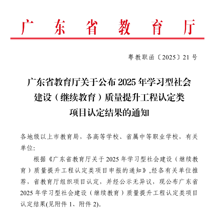 3月,根据《广东省教育厅关于2025年学习型社会建设(继续教育)质量提升工程认定类项目申报的通知》相关要求,继续教育学院组织各二级学院开展项目申报工作,并组织校外专家对6个申报项目进行指导和评审,择优推荐3个项目报送省教育厅。