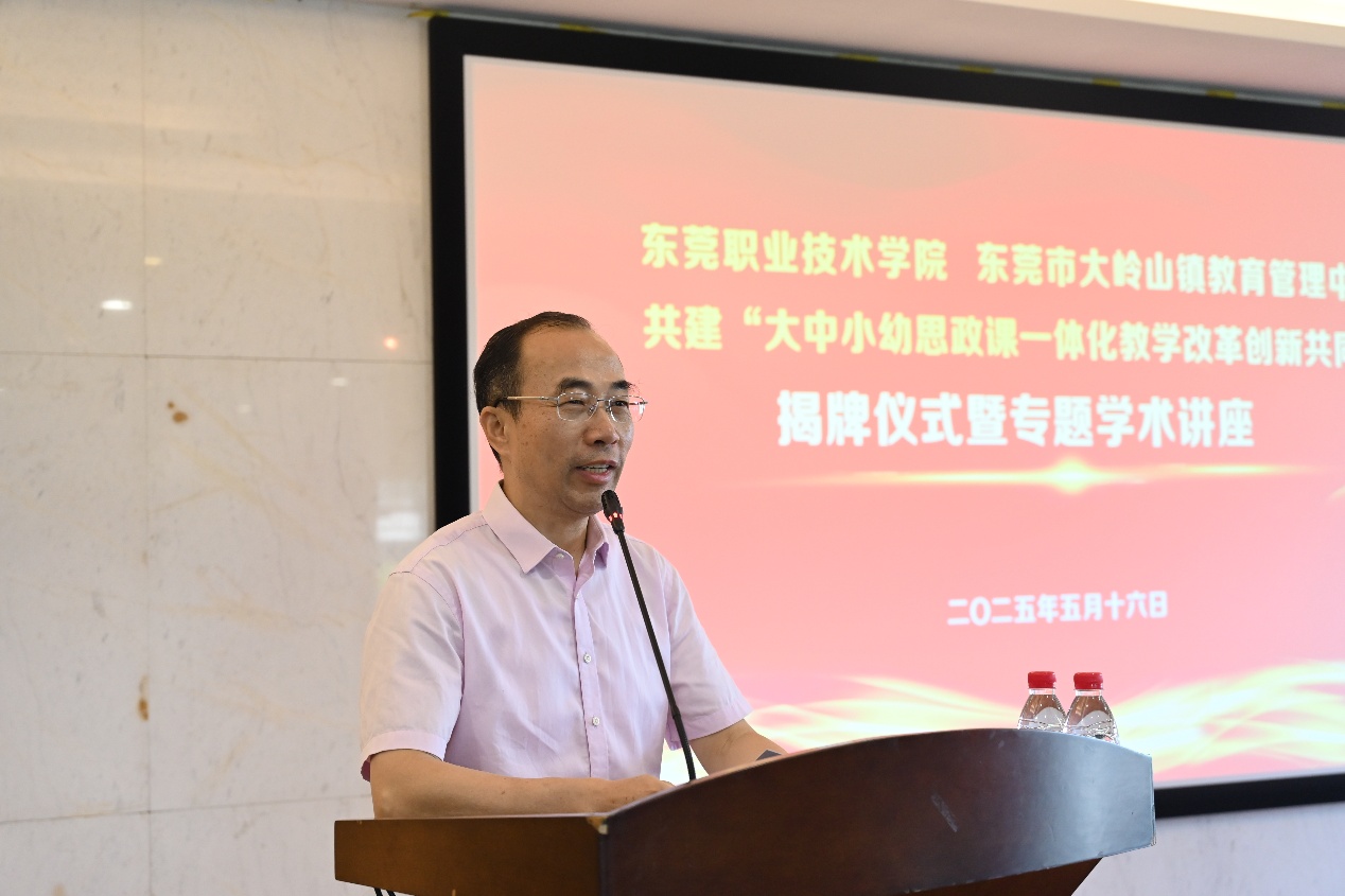5月16日上午,我校联合东莞市大岭山镇教育管理中心举办了“大中小幼思政课一体化教学改革创新共同体”揭牌仪式暨专题学术讲座,开启思政教育协同育人新模式。