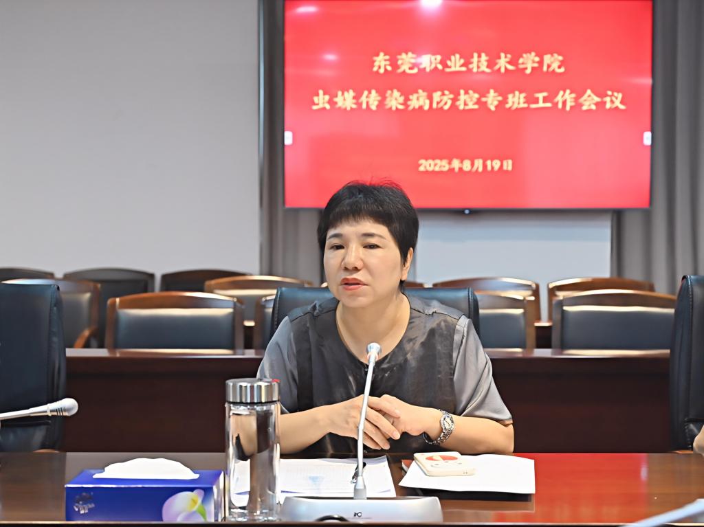 会上,后勤处处长李浩泉对《东莞职业技术学院2025年秋季开学前后虫媒传染病防控工作方案》进行了详细解读,并汇报了当前学校虫媒传染病防控工作进展情况。校党委委员、党委宣传部部长杨洋就进一步做好基孔肯雅热等虫媒传染病疫情防控工作做了专题研究部署。