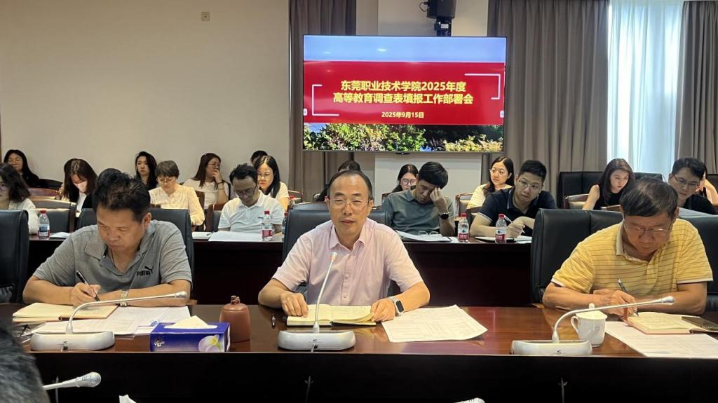 会议严格按照教育部职业教育与成人教育司《关于做好职业教育2024-2025学年信息数据采集工作的通知》、教育部办公厅《关于做好2025年教育事业统计工作的通知》(教发厅函〔2025〕25号)及广东省教育厅相关通知要求部署工作。质量管理办公室张海鹰主任传达了文件精神,明确数据填报时间节点、注意事项,并提醒各部门做好分工衔接,他指出数据填报工作是教育事业统计的重要环节,事关学校办学状态评估、教育决策制定及发展规划编制,对提升学校治理能力和办学质量具有重要意义。