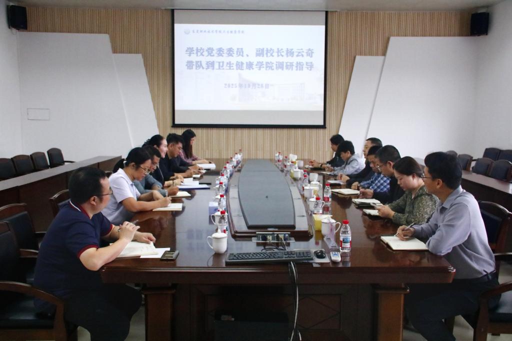 杨云奇副校长对卫生健康学院各项工作取得的成效予以充分肯定,随后聚焦分校区管理、校园安全保卫与防控、一站式学生社区建设、学生社团与社会实践活动开展、图书管理建设、信息技术建设、意识形态安全管理、保密日常工作管理、学生心理健康教育等关键工作,与参会人员深入交流研讨并提出指导意见。他强调,卫健院要履行好分校区管理的主体责任,各职能部门要高度重视道滘校区的发展需求,切实履职、加强沟通、形成合力,共同推动道滘校区工作稳步前进。