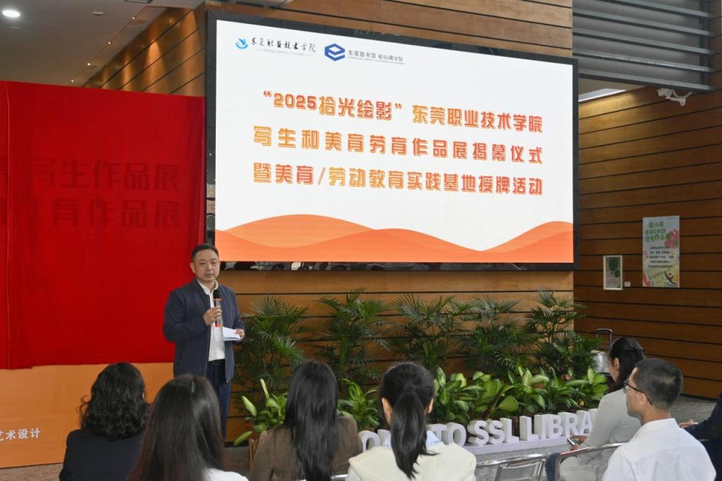 杨云奇副校长在致辞中指出,此次合作不仅是学校美育与劳动教育落地落实的重要举措,更是高职院校服务地方文化建设、培养高素质技术技能人才的有效途径,期待与松山湖图书馆在师资共享、项目共研、活动共办等方面开展更广泛的合作,共同打造具有示范意义的公共美育与劳动教育实践平台。