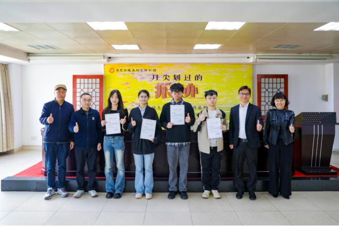在展览现场,蔡东宝副书记观赏了师生们以刀为笔、于瓷上创作的精彩作品,他对杨晓光大师及其团队在非遗技艺传承与创新方面取得的成果表示高度肯定。颁奖仪式环节,蔡东宝与博物馆馆长朱红宇、党总支负责人车美娟、杨晓光大师共同为在本次展览中获奖同学颁奖,鼓励他们再接再厉,继续在传统工艺与现代设计的融合道路上探索前行。他还与张晓晴和唐鑫等学生代表交流,了解他们的创作心得与学习体会,并看望了在岗工作的创意设计与传媒学院(筹)广告艺术设计专业2023届毕业生袁家豪、黎智镔等同学,关心他们的职业发展近况。