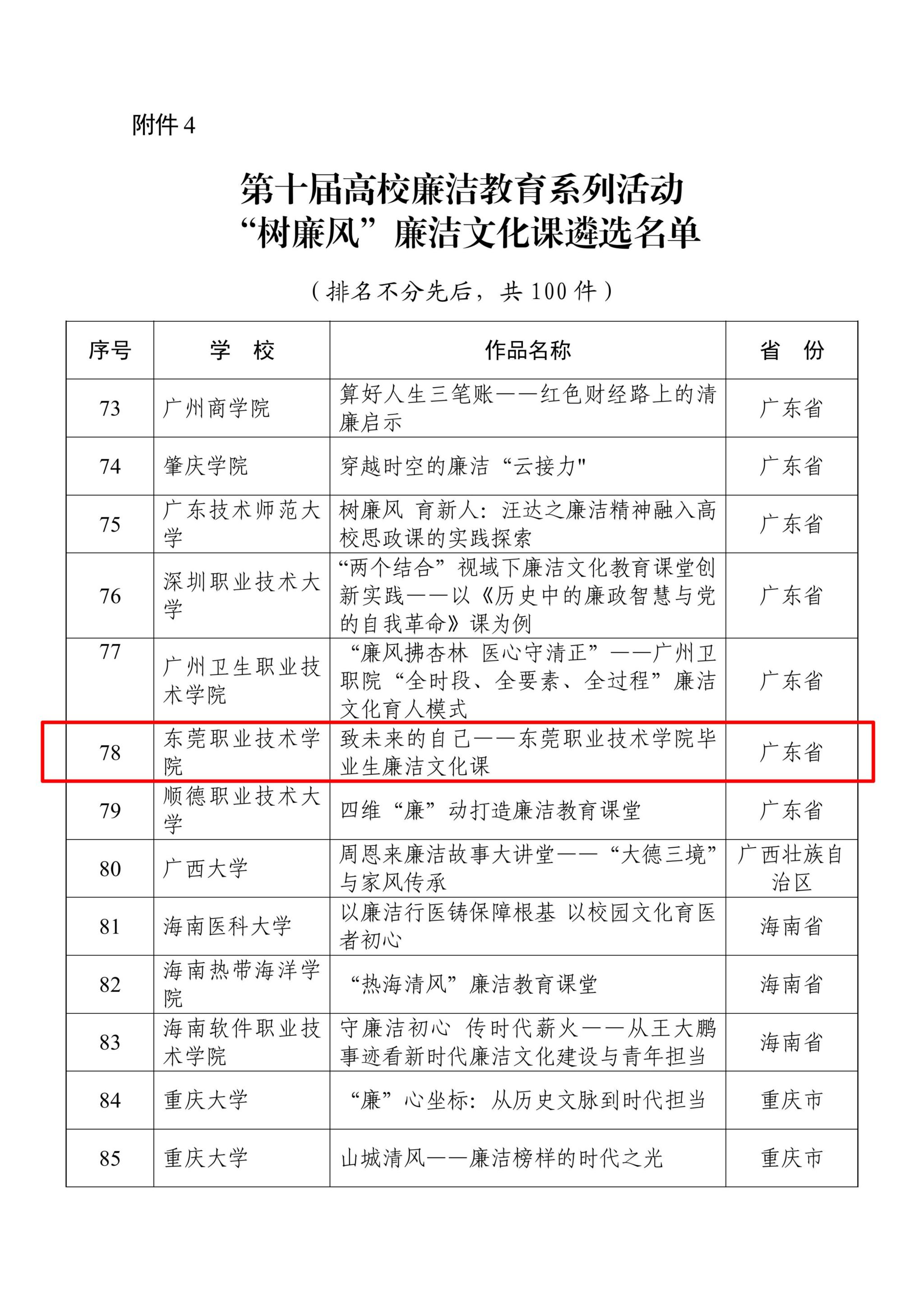 日前,教育部思想政治工作司公布第十届高校廉洁教育系列活动结果,我校共有4件作品入选,入选数量位列全市第一、全省第一、全国职业院校第二,充分展现我校“廉润东职”廉洁文化品牌建设的扎实成效与鲜明特色。