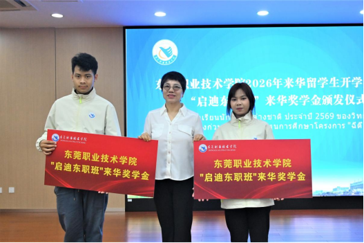 贺定修校长在致辞中对来华留学生提出三点期望:一是依托企业实践平台,深入一线锤炼过硬技能;二是积极融入校园生活,提升中文水平,促进中泰青年交流互鉴;三是走进东莞、了解中国,努力成长为高素质技术技能人才和中泰友好交流的使者。