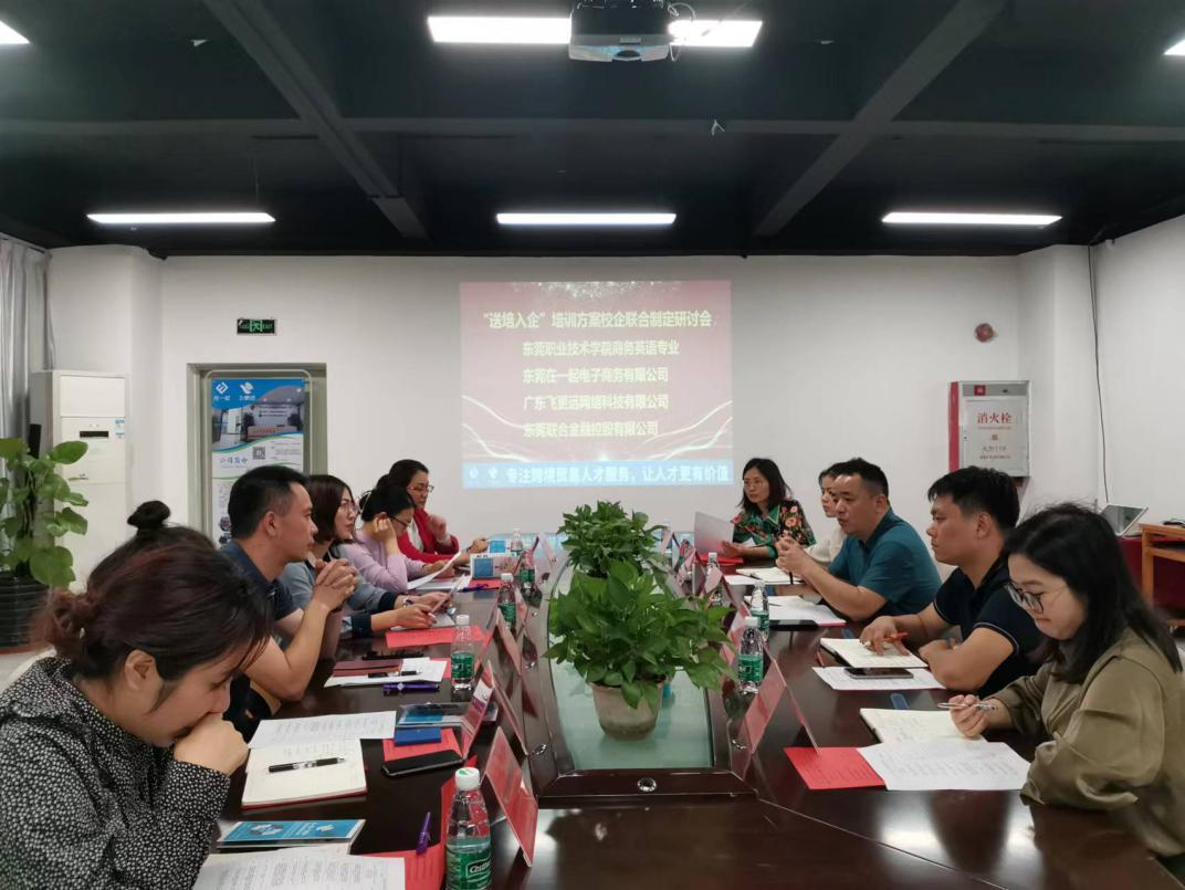2022年5月16日下午,商贸学院商务英语专业云芳、谭玲萍、曾小敏三位老师赴东莞在一起电子商务有限公司参加“送培入企”培训方案校企联合制定研讨会。松山湖联合金融投资有限公司总经理侯康、招商运营主任杨健华,东莞在一起电子商务有限公司总经理林镜福等人参加了本次研讨会。校企方表示接下来将“送培入企”项目进行品牌化打造,初步确定了宣传推广方案。