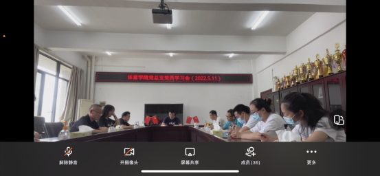 近日,体育学院党总支在游泳池附属楼309会议室和钉钉会议同步召开党员学习会。会议由体育学院专职副书记张楠同志主持,党总支书记、委员及部分党员代表现场参加会议,其他党员同志通过线上形式参加。