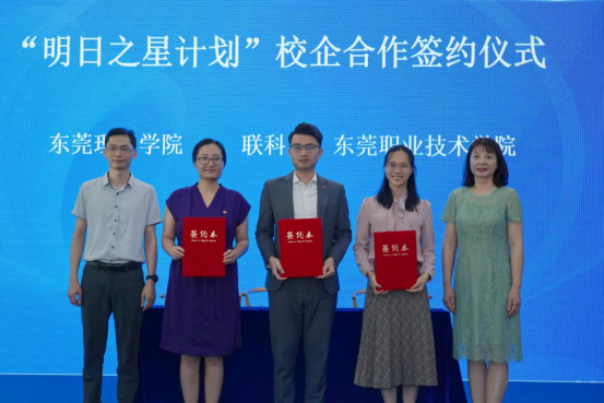 为发挥共青团在服务“人才强市”战略中的积极作用,6月22日,由团市委、市学联、南城团工委联合发起的“明日之星”计划正式启动,我校团委代表与东莞市天安数码城有限公司、联科国际信息产业园代表分别签订“明日之星”大学生联合培养计划协议,达成以下合作意向:建成一批阵地,培养一批人才,发展一支队伍,形成一套模式,打通一条渠道,从项目合作、能力提升、人才培养、就业服务等领域开展深度合作,形成“高校+科技园区”对学子进行联合培养的新形式,建立“学校导师+企业导师”双导师教学机制,进一步提升培养的精准性和有效性,通过参访实践、职业规划、就业实习、创新创业等第二课堂资源和空间的拓展,打造“升级版”第二课堂,为进一步深化共青团实践育人成效作出有益探索。