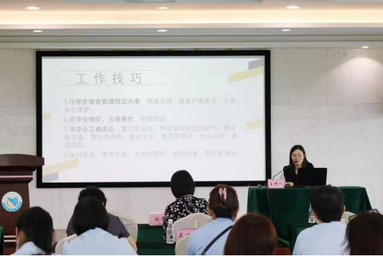 为进一步加强学生宿舍管理员队伍建设,8月19日,仲恺农业工程学院学生工作部(处)杨燕老师为我校全体宿舍管理员进行培训,会议由学生处副处长李俊衡主持。