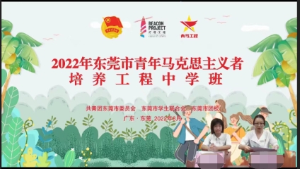 为深入贯彻落实习近平新时代中国特色社会主义思想,持续深入推进“青年马克思主义者培养工程”,着力为党培养和输送坚定的青年政治骨干,由东莞团市委主办,我校继续教育学院承办的东莞市“青马工程”中学生培训班于8月19日-23日开展线上培训活动。全市镇街(园区)中学生团员骨干105人参加线上培训。