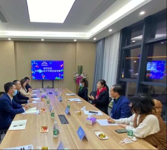 2022年12月14日下午,商贸学院院长、党总支书记颜汉军教授、产教融合办公室主任何风梅教授、副主任郭文琦副教授以及商贸学院商务英语专业负责人云芳老师走进松山湖跨境电商产业园,与东莞松山湖金融谷投资有限公司以及东莞在一起电子商务有限公司洽谈跨境电商产业学院建设事宜。