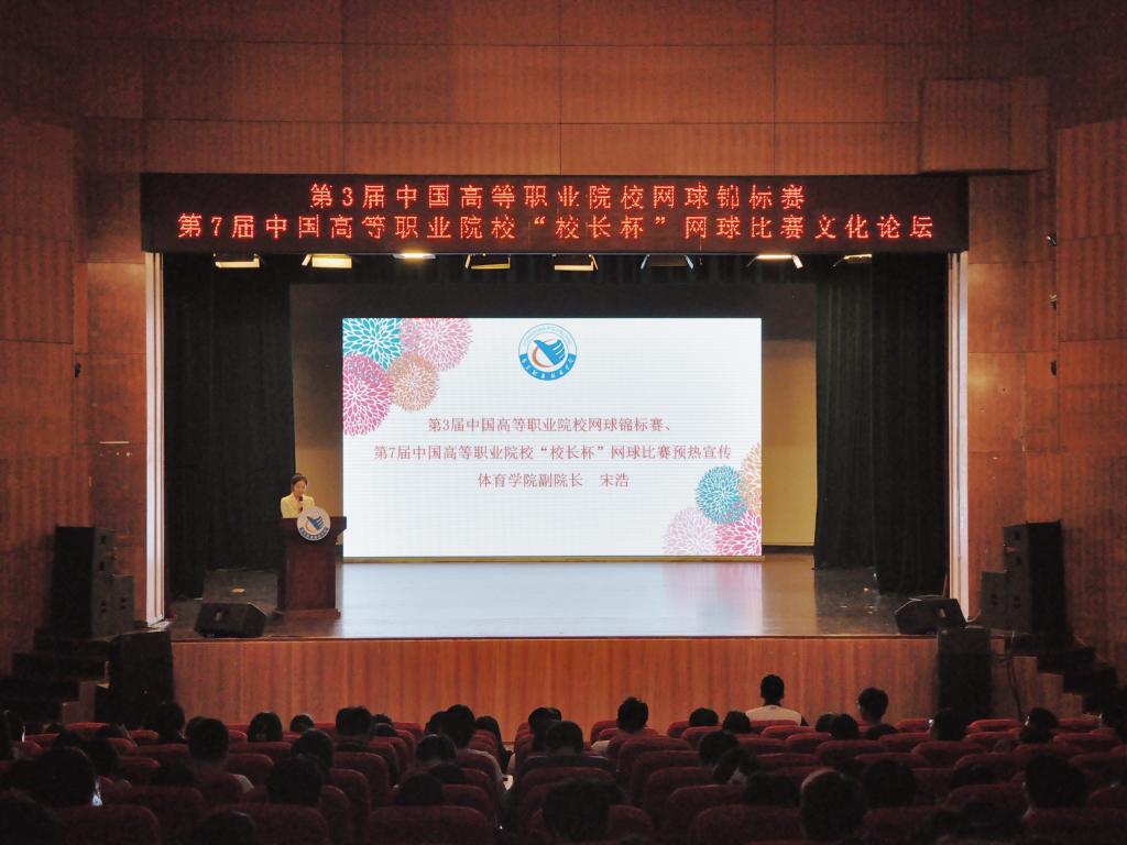 6月29日下午,由学生处和体育学院共同主办的“第3届中国高等职业院校网球锦标赛、第7届中国高等职业院校‘校长杯’网球比赛文化论坛”在修远楼梦想剧场举行。本次活动邀请了体育学院副院长宋浩、梁四海副教授、19级优秀校友卢淼莹和21级体育运管2班曾家敏,为与会150名师生推广和普及网球运动。