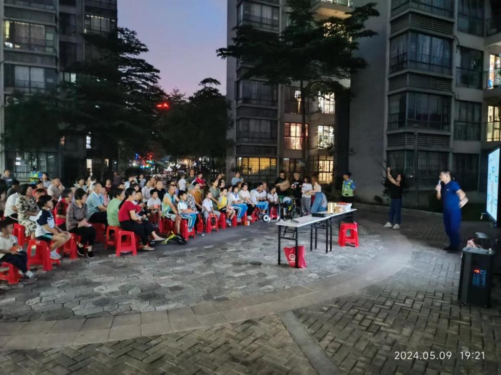 为切实提高教职工及住校家属的消防安全意识和火场自救互救能力,5月9日晚,保卫处联合松山湖消防救援大队和产业中心在高层住宅小广场开展消防安全知识宣讲活动,此次活动约150余人参加。