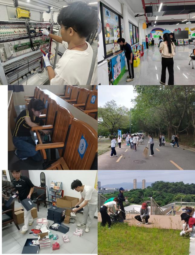 全校学生积极参与了宿舍内务整理、教学区卫生清洁、校园公共环境美化、实训室器材维护、手工劳作以及园艺种植等多项活动。他们不仅确保了宿舍环境整洁有序,还将教室的地面、桌椅、黑板清洁干净,使得学习环境焕然一新。在老师的指导下认真检查和维护实训室的各种器材设备,确保它们能够正常使用,为实践教学提供了有力保障。此外,同学们还积极参与校园公共环境的美化工作,清扫枯叶、除杂草,体验劳动的乐趣。通过这些活动,学生们不仅提升了自我管理能力,还增强了团队合作精神,为校园生活增添了更多的色彩。