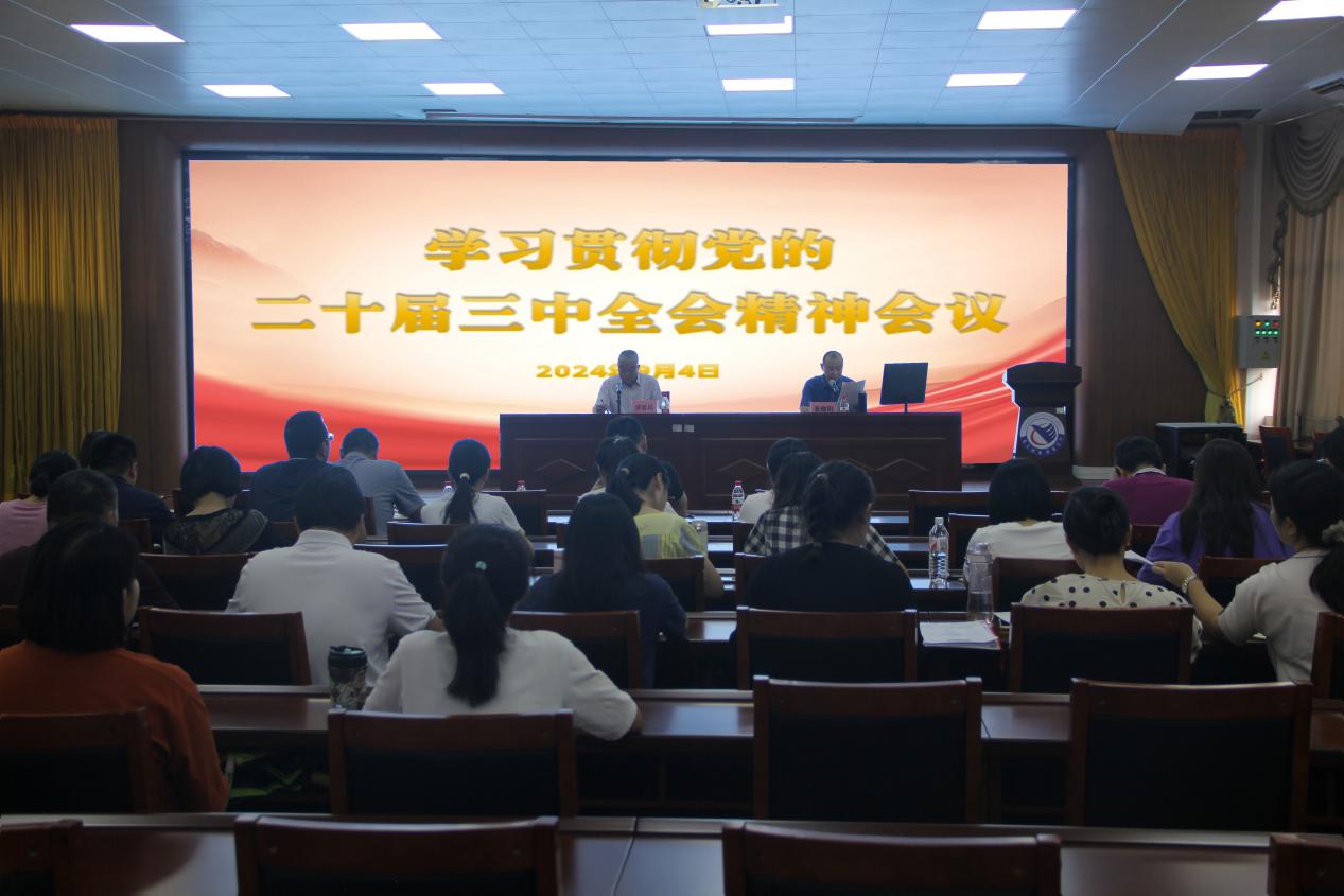 9月4日下午,卫生健康学院组织全体党员师生召开学习贯彻党的二十届三中全会精神会议。会议传达了上级和学校党委关于深入学习贯彻党的二十届三中全会精神系列会议和文件精神。
