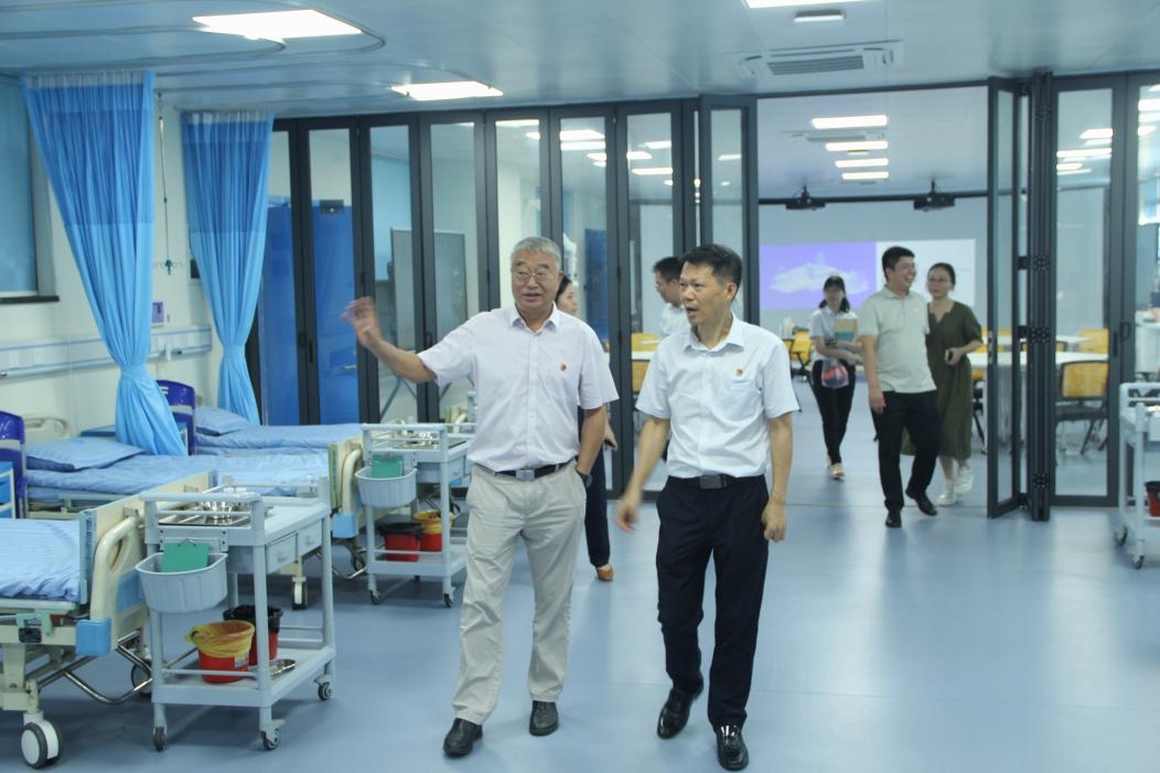 会后,潘海恩书记一行在卫生健康学院党总支书记、院长雷亚民的陪同下,参观了学院智能医学虚拟仿真实训基地、生命科学馆、化学药物实验室、药植园等地。