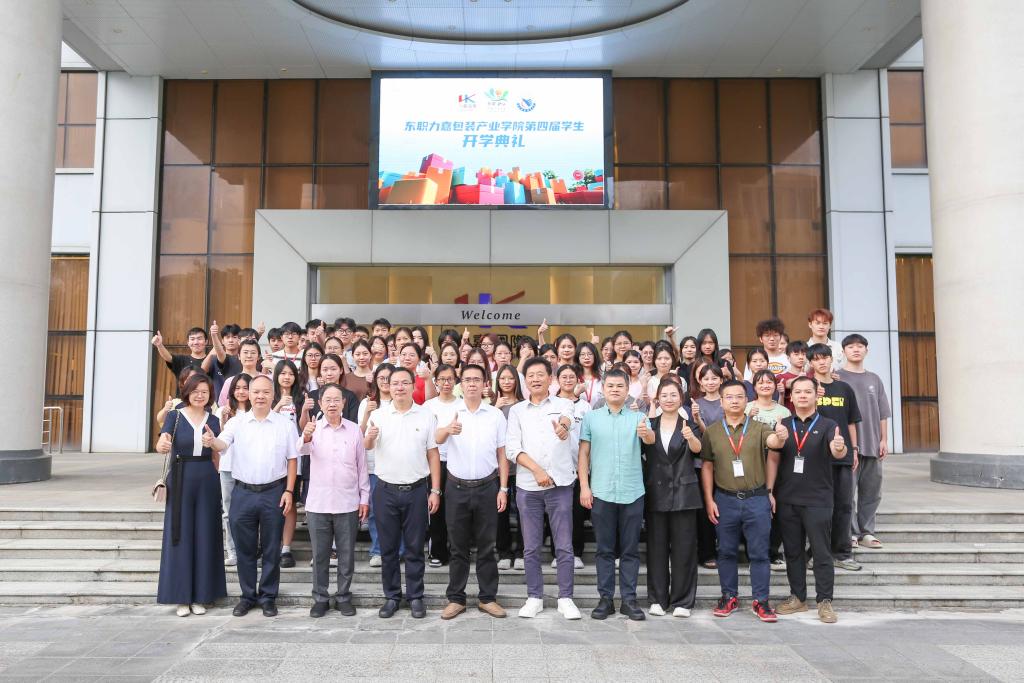 9月25日下午,东职力嘉包装产业学院开学典礼在力嘉环保包装印刷产业园行政楼大会议厅举行。我校产教融合办主任陈永刚,桥头镇人民政府党委委员林锦彪,力嘉国际集团董事长马伟武,东莞市出版业协会秘书长麦志强以及72名包装策划与设计专业学生等近百人出席。