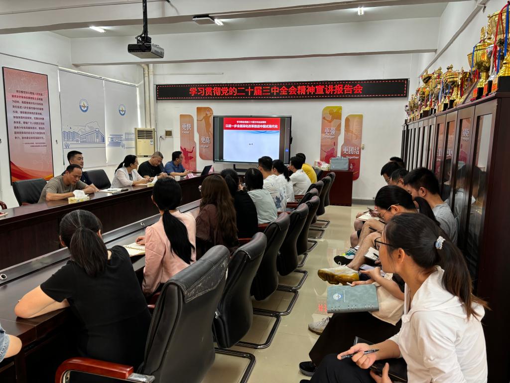 为深入学习宣传贯彻党的二十届三中全会精神,10月8日上午,我校党委委员、宣传部部长杨洋到体育学院开展“以进一步全面深化改革推进中国式现代化”为主题党的二十届三中全会精神宣讲会,体育学院领导班子成员、全体教职工参加会议。