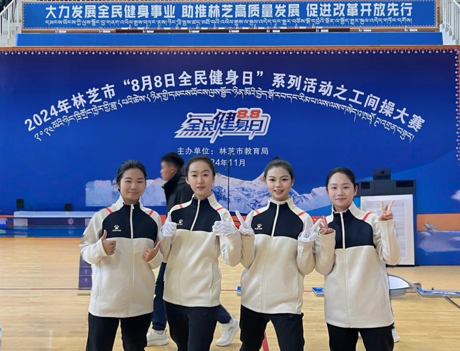 11月23日,2024年林芝市“8月8日全民健身日”系列活动之一的工间操大赛在林芝体育馆圆满落幕。本次活动由林芝市教育局主办,我校学前教育与人文学院援藏支教大学生符梦玲、张欣怡、张馨文、骆晓琳作为巴宜区教育局代表队队员,携手15名巴宜区教师参与了此次比赛。