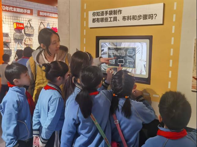 “袋”代相传先锋队给虎门中心小学学生开展了沉浸式、参与式、体验式的思政育人活动。引导小学生们走进这座承载着东莞改革开放历史记忆的陈列馆,积极为他们提供导览和咨询服务,介绍太平手袋厂的创建历程、各种珍贵的历史展品,并进行集章、派发纪念袋等任务,以及认真解答参观者的问题。