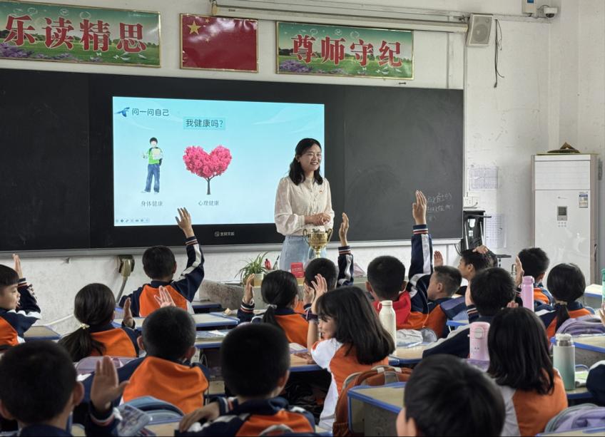 4月11日上午,调研组再次走访英花小学。卫健院第三党支部书记李珍和第二党支部书记闫勇分别为英花小学三年级和一年级的同学们带来“我健康吗?”和“科学用眼”主题健康科普课堂。李珍书记巧用互动提问、小游戏等方式引导同学们塑造良好个性品质;闫勇书记则借助情景式体验、直观教学等模式为同学们讲解护眼知识。课堂上,同学们热情高涨,积极互动、踊跃发言,气氛十分热烈。