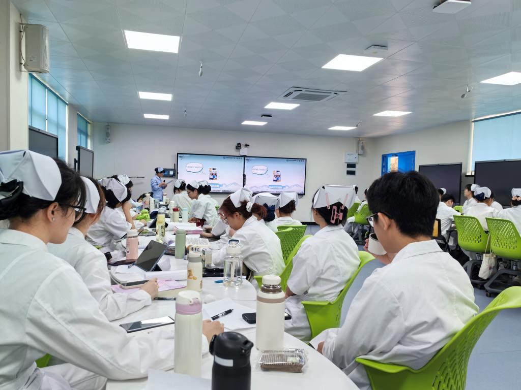 邓国金老师在“护理综合实训二”课堂上对学生小组分享内容进行点评